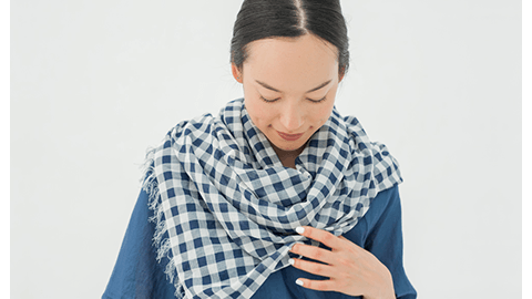 - エジプト綿のくびまきの両端は切りっぱなしのデザインを採用しました。そのため、端の横糸は、洗濯を繰り返すうちに、ほつれることがあります。気になるときは、ほつれてきた横糸をぬいてください。