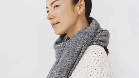 ヘリンボーンのような綾織りは、織りの組織が斜めの動きに柔軟ですから、からだにしっかりと「まとう」感覚もあるんですよ。