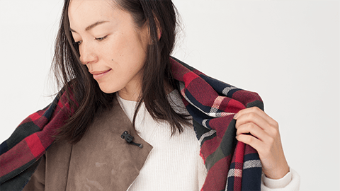 織り方は、綾。中羊糸の双糸を使い、空気をたくさん含むようにふんわり織っているので、きゅっとまるめても、ぽんとはじけるような弾力があります。