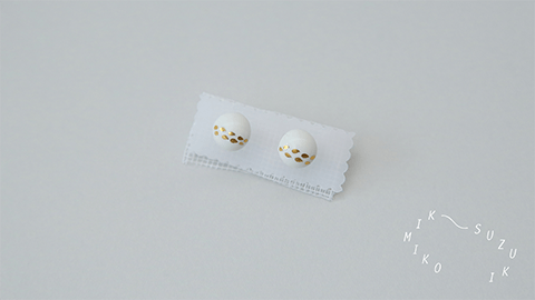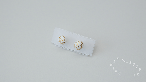 錠剤のように小さな小瓶入りピアス。花や雄しべ、雌しべなどをモチーフに金彩を施しています。手描きのため一点一点表情が異なり、さまざまな模様があるのが特長です。※画像はイメージです。一点一点つくっておりますので、金彩の入り方、絵柄等は若干異なる場合がございます。