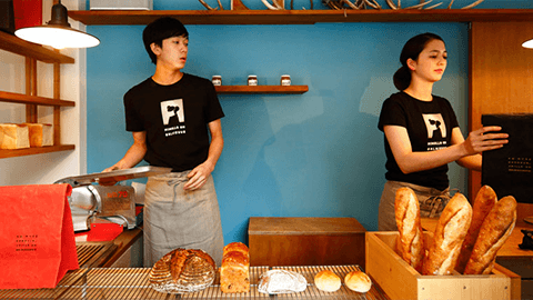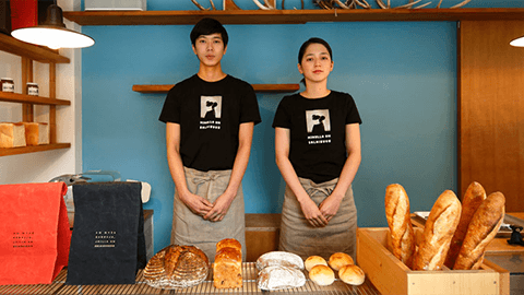 男性:ギャルソンエプロン¥3,990/fog linen work、パンツ¥19,950/ヤエカ(ヤエカ アパートメント ストア)