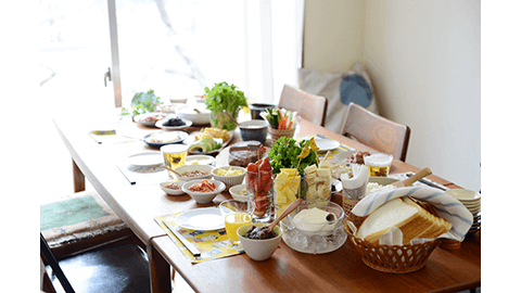 『LIFE あつまる。』は、テーマごとに参加者4人から6人の食卓を想定しています。たのしい「あつまり」のために、飯島さんが考えたレシピは、コラムも含めて90以上です。