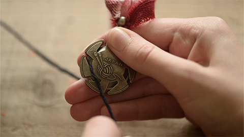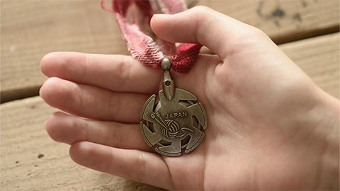 メダルのようなこのアイテムは、編み糸用のカッターです。詳しい説明はこちら。