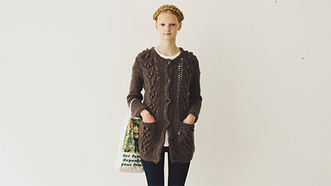 ウェアの編みものキット。すっきりしたシルエットの、こんなにかわいいカーディガンが自分で編めます。詳しい説明はこちら。