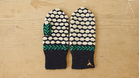 カラフルなマーガレットの花柄が、とてもキュートなミトン。こちらはレディースサイズのデザインです。詳しい説明はこちら。