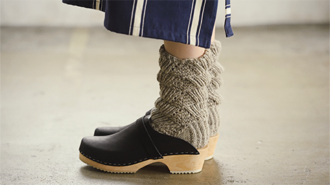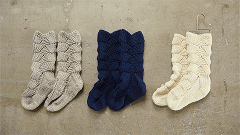 Miknitsではじめての販売となる、「くつした」が編めるキットです。扇のような形がつづく、この柄を「ベアトラック(くまの足あと)」と言います。詳しい説明はこちら。