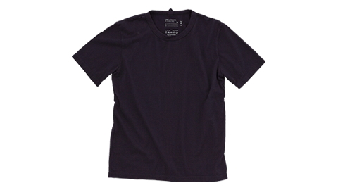 アンダーウエアとしても使える、男性用のクルーネック(丸首)Tシャツです。シャツの下などにも着やすいよう、身巾をすこしせまくして、腕まわりのシルエットをすっきりさせました。素材は、吊り編み機のスペシャリスト、和田メリヤス株式会社といっしょに開発しました。かるく、やさしい着ごこちですから、長時間着ていてもストレスフリー。もちろん、トップスとして、1枚でも着ていただけます。