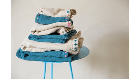 - 「塩素系漂白剤」、「蛍光増白剤がはいった洗剤」を使うと、変色や、不自然な色あせをしてしまいます。洗濯をするときは、粉石けんや液体洗剤など、「蛍光増白剤がはいっていない洗剤」をお使いください。また、お日様のもとで乾かしたものは気持ちの良いものですから、乾燥方法も、お好みで選んでくださればよいことですが、色落ち、色あせを防止するには、風通しのよい場所で陰干しをしてください。