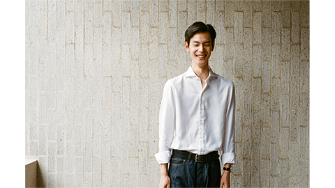 “カッタウェイ”(cut away)は、ぐっと横に開かれたようなかたちの襟。ネクタイを締めないひとがふえてきたなか、襟先の羽が横に開いているカッタウェイは、鎖骨のところでうまく留まってくれ、襟の開きがひじょうに美しく見えます。もちろんネクタイを締めても、格好よくきまります。このカッタウェイシャツの素材には、「オックスフォード」をえらびました。といっても、粗い印象のカジュアルなものではなく、海島綿とスーピマ綿の交配種であるマスターシードコットンの糸を細くつむぎ、やわらかく織っていますから、とてもソフトな感触。ちなみに、生地をつくる工程は、日本国内でおこなっています。それをイタリアに送り、ボレッリ社が縫製。かたちは、まったくのイタリア仕様ではなく、メンズのシャツはフィット感が大切であると、日本人の体型に合うスタイルを採用しています。