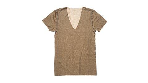 メンズの白いシャツの下に着たときに、透けず、着ていることがわからないベージュの肌着。サラリとした触感で、とてもさわやかな着心地です。グンゼが開発した“SEEK”(シーク)というブランドで、首まわり、袖、裾が「カットオフ」(切りっ放し)仕様。生地を巻いたり縫ったりしていないので、肌との段差がすくなく、シャツ越しに目立たないのですね。サイズはMとL。迷われたら、ぴったり目に着ていただくのがよいかと思います。着丈については公式発表がないのですが、シャツの下に着てタックインし、動いていてもはみ出してこない、じゅうぶんな長さをもっています。