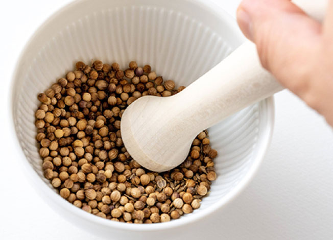 コリアンダーの原形を粗めに手作業で潰したものを、
