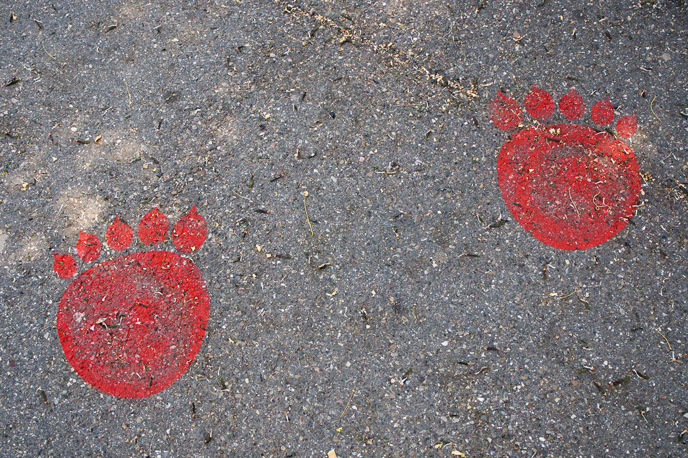 左耳にタグがついたテディベアの石像が見えてきましたよ。
