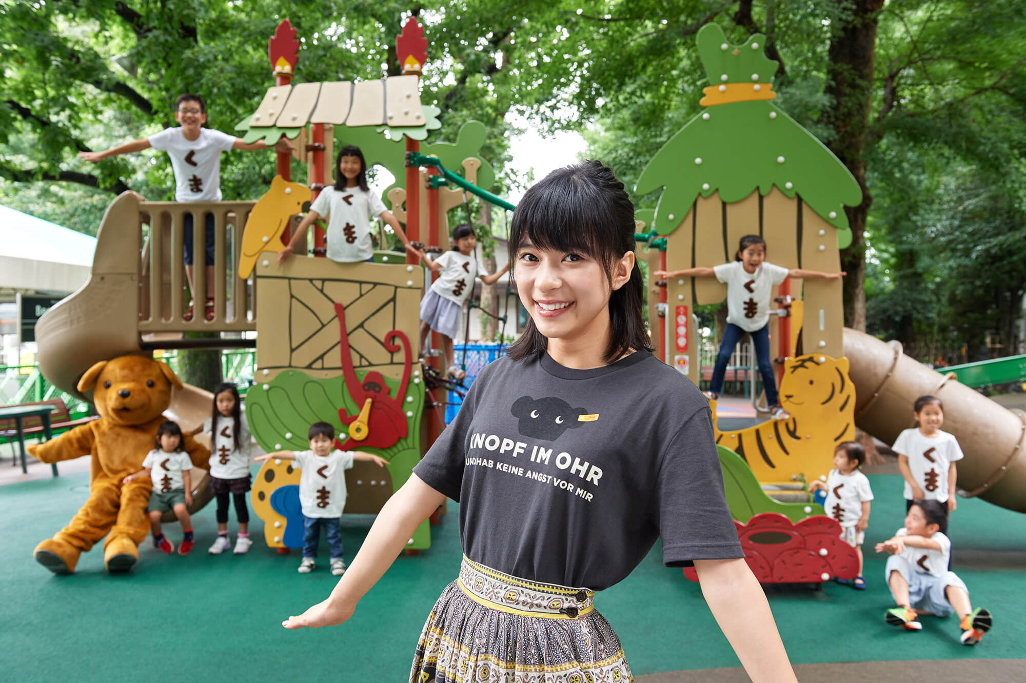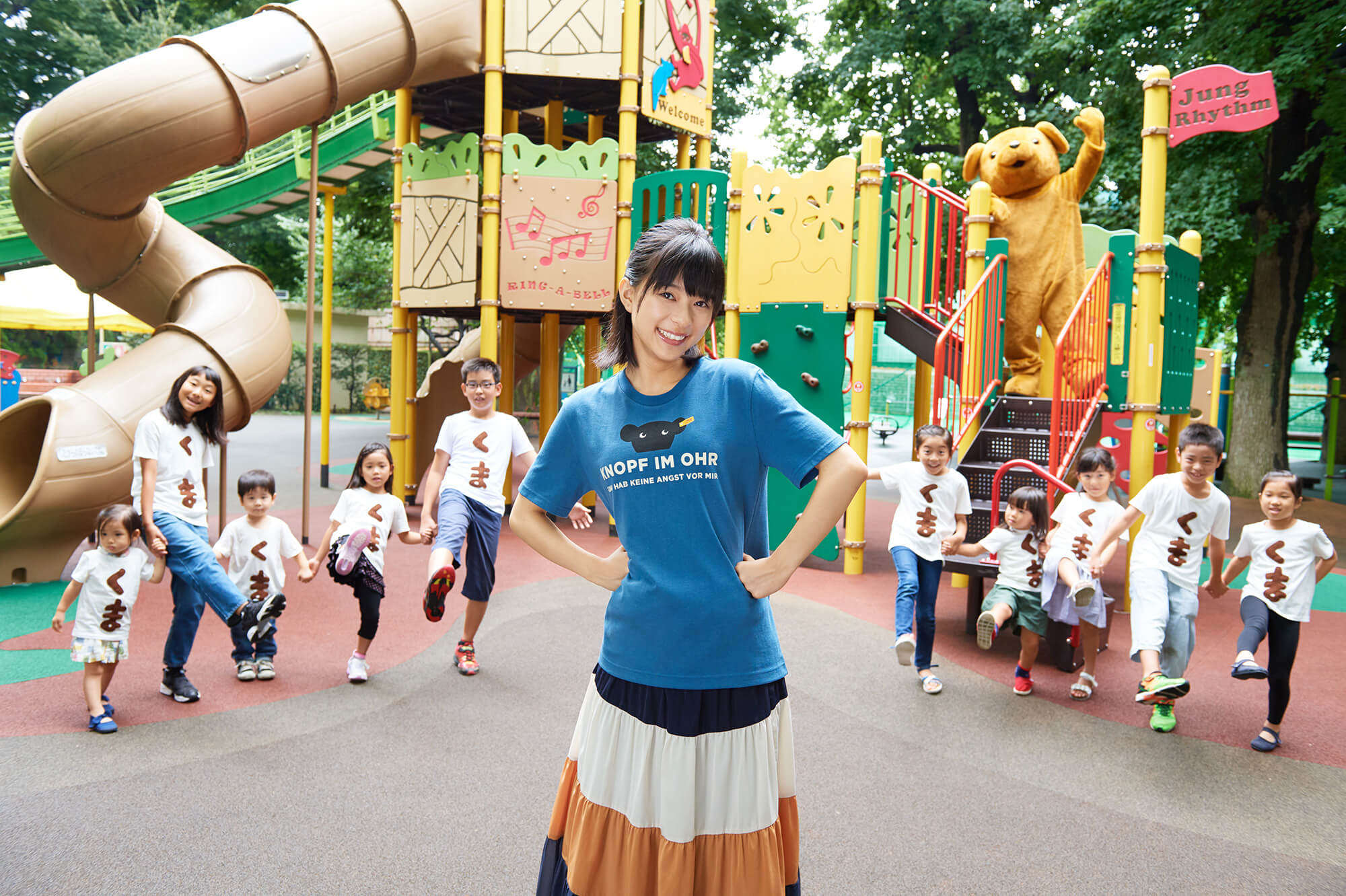 左耳にはシュタイフの「ボタン・イン・イヤー」が。