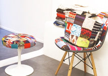 世界各国からあつめた古着のニットをパッチワークした