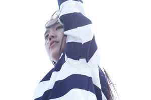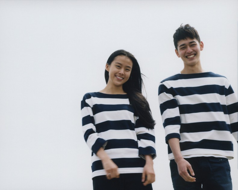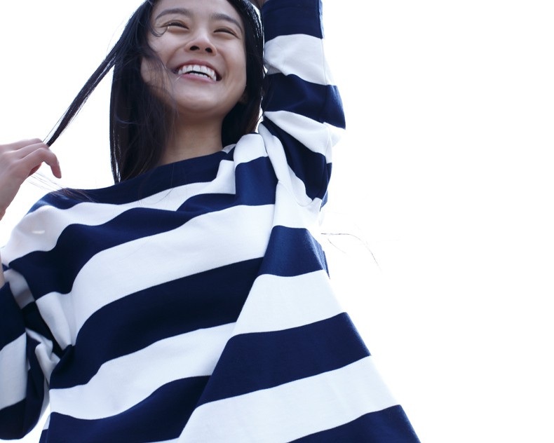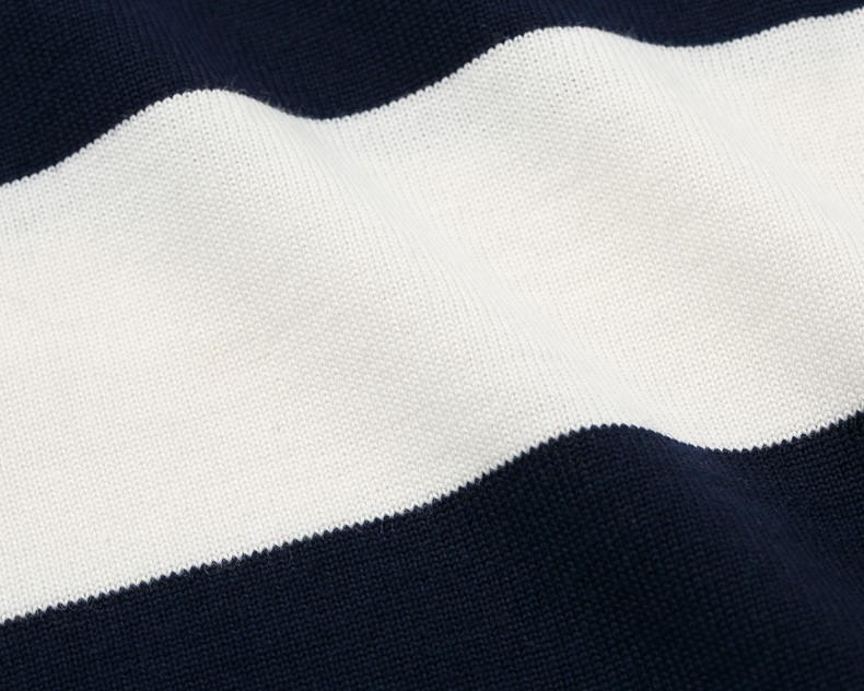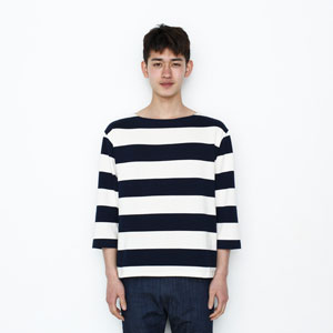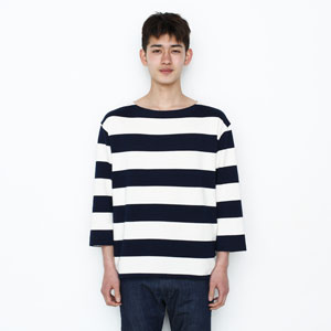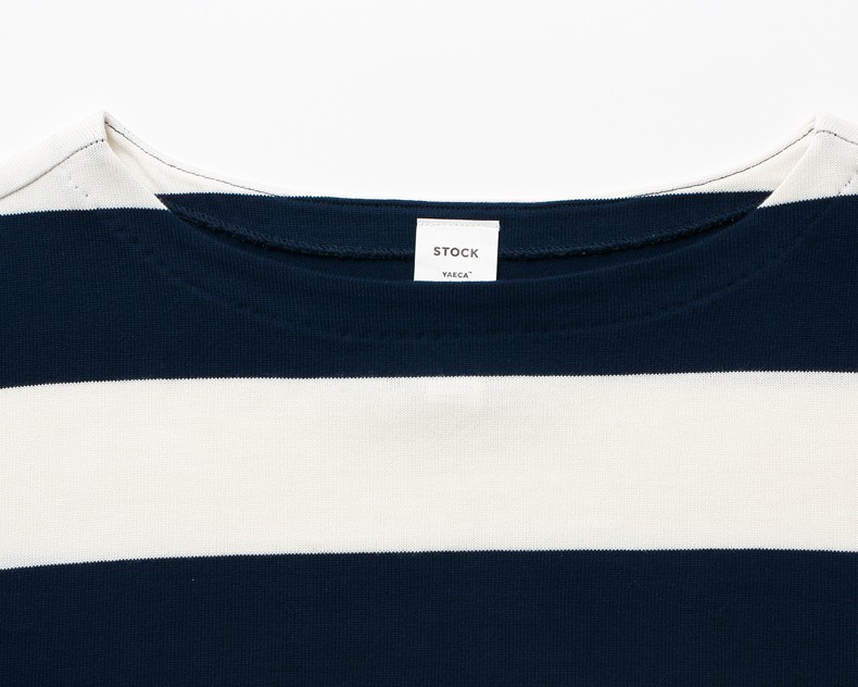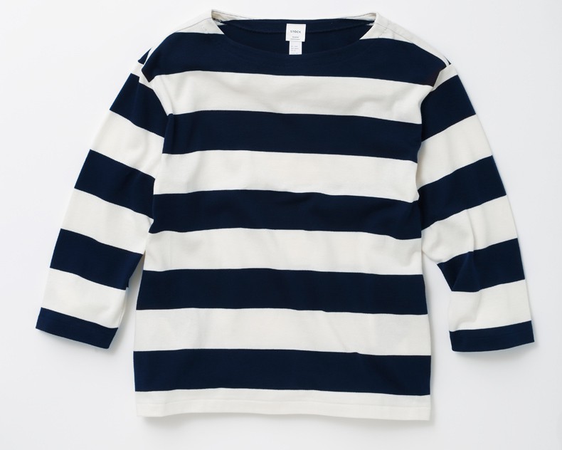 ボーダー柄の配色はオフホワイトと濃紺で、