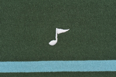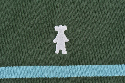 くまとおんぷの刺しゅうは、白いに近いシルバー、