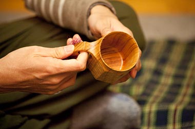 | KIKI | いえいえ(笑) これは、もとになったものがあって、 それこそラップランドに、「ククサ」っていう、 白樺のこぶから削り出した、木のカップがあるんです。 |
