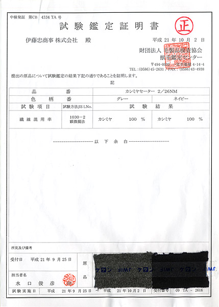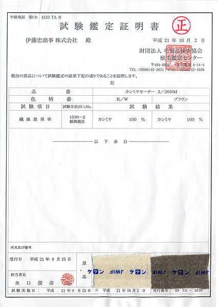 専門の第三者機関である「財団法人毛製品検査協会」に