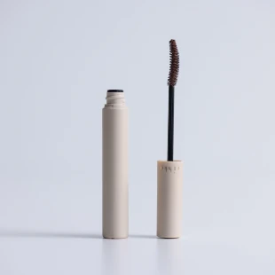 「真っ黒ではない色をつけたい」 という気分のときには、 ブラウンのマスカラ。 グリーン系のパール入りアイシャドウを 上まぶたにうっすらと塗ることで目元を明るくし、 マスカラを映えさせます。 下まぶたにはひとさじのポイントを効かせて、 オレンジ系のカラーを。 マスカラは外に向かって塗ると、 いつもとはまた違った印象に仕上がります。