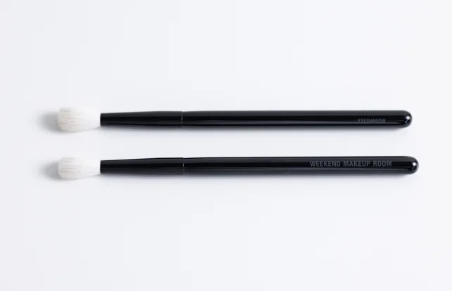 やわらかな山羊の毛を使った丸筆は粉含みが良く、 ブラシを回転しながらつけることで 何度もアイシャドウをつけ直す必要がありません。 ふんわり色を乗せられるのでつけすぎる失敗も少なく、 メイク初心者の方にもおすすめのアイテム。 草場さん主宰の、 週末だけのプライベートメイクアップサロン 「WEEKEND MAKEUP ROOM」 の印字入りです。