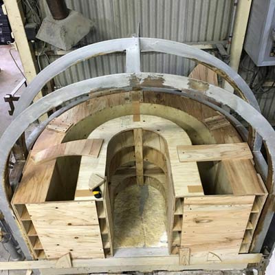 切り端や竿についたガラスなどを混ぜて溶かします。