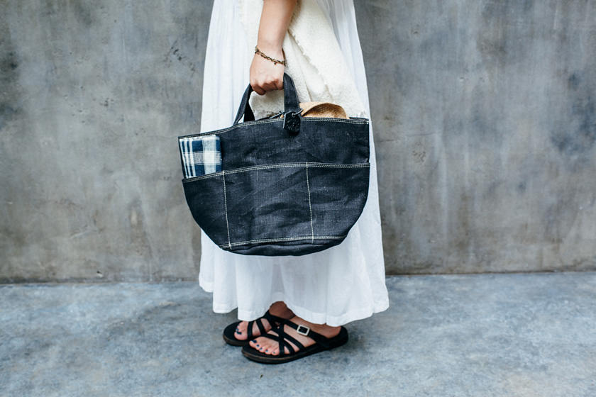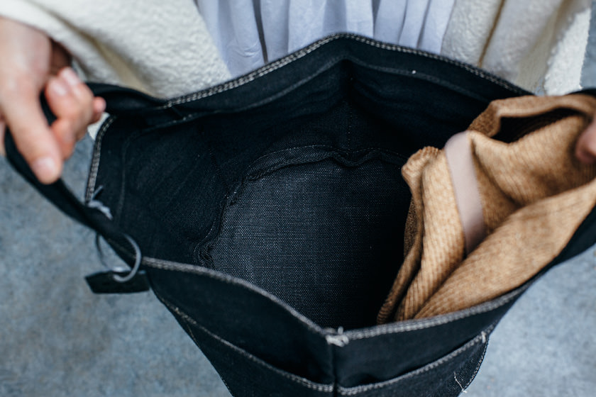 素材は、もともと丈夫なリネンを、2枚重ねに。