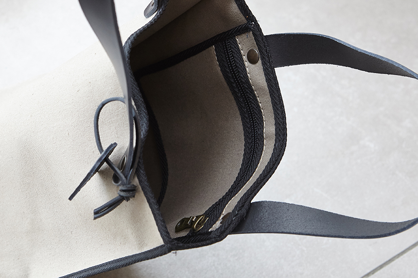 内側にはジッパー付きポケットがついて、