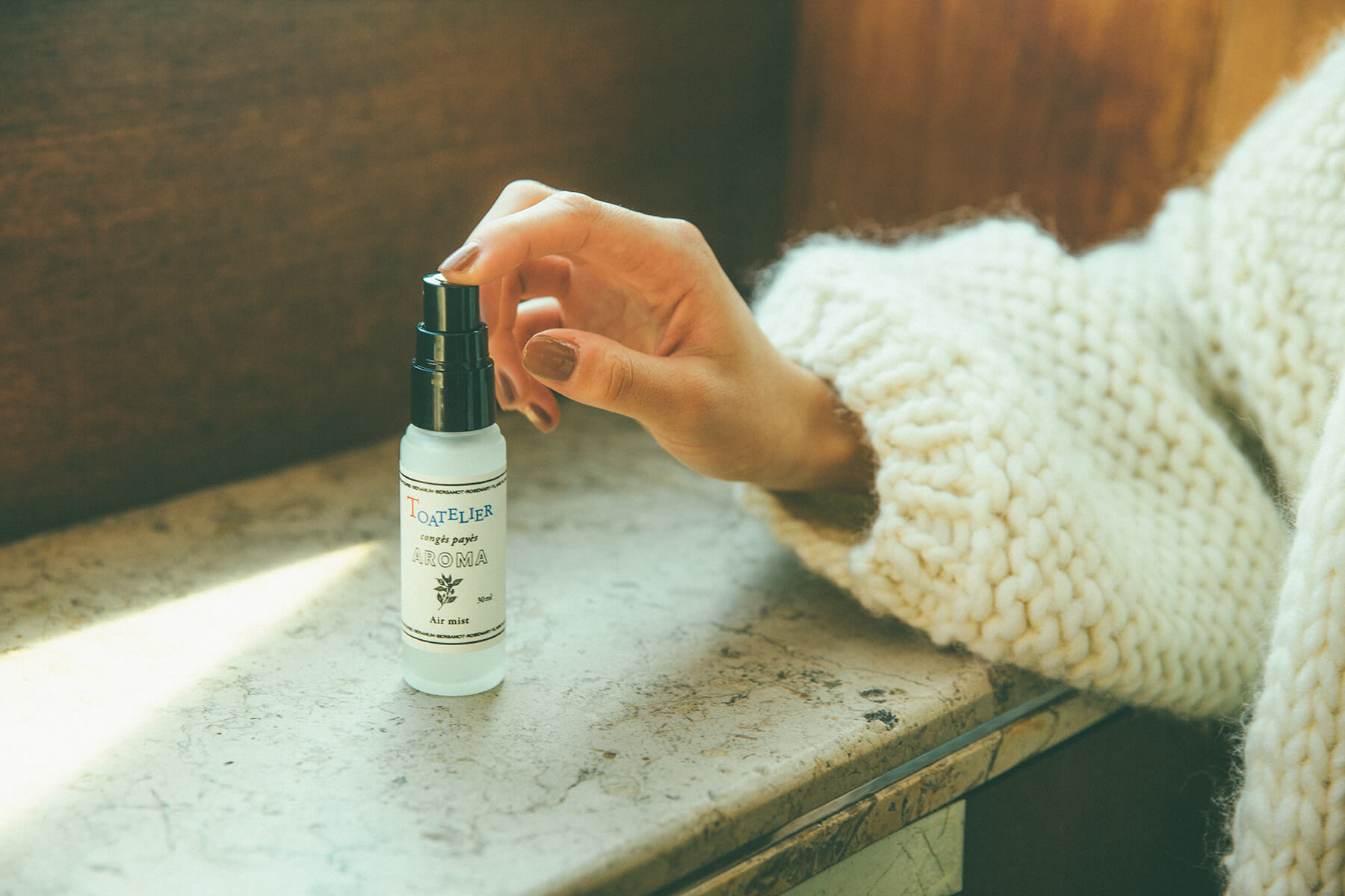 身の回りの布製品にふきかけて使う、 香りのアイテムで、