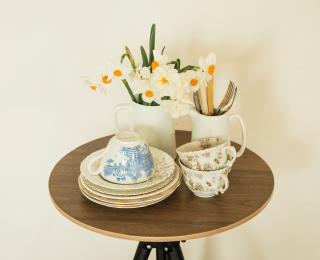 サイドテーブルにしたり、一輪挿しを置いてみたり。