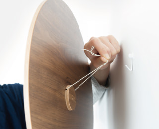 ヒモを通して壁のフックにかければ、