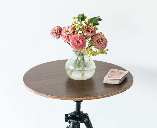 サイドテーブルにしたり、一輪挿しを置いてみたり。