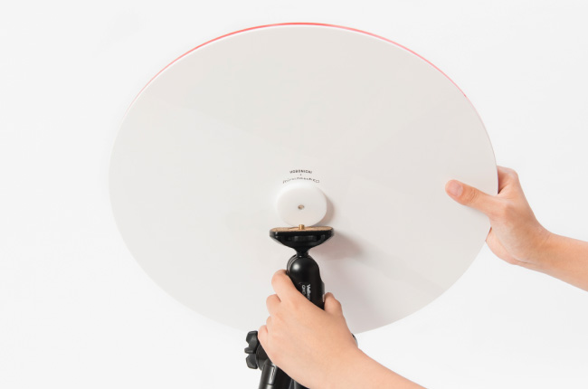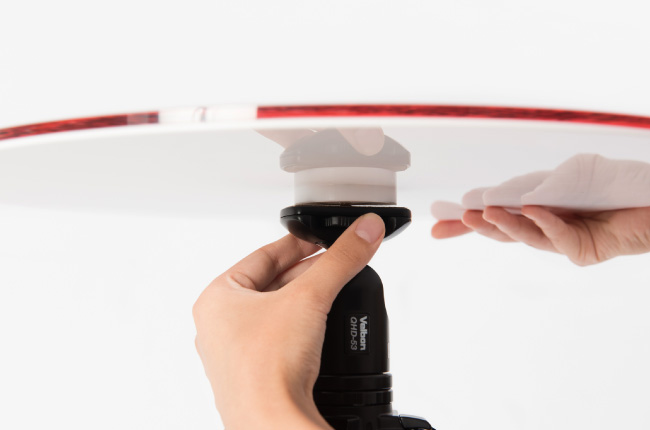 ▲左手で雲台のカメラネジを抑えながら、天板を軽く回し、
