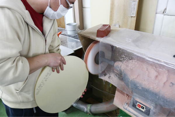 ▲カットした後は、手で触っても危なくないように、キレイにみがきをかけます。