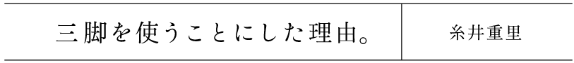 ティーテーブルに「三脚を使おう」 というアイデアは、糸井重里から飛び出したものでした。なぜ、三脚を?なぜ、テーブルの脚にしようと?完成したばかりのティーテーブルを眺めながら、発想の原点を糸井に訊ねました。 ※この記事の取材は2015年におこなったものです。