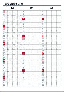 ※2007年1月から3月までは、 1ページに3ヶ月分の 書き込み欄になっております。
