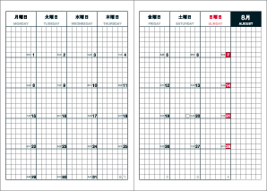 1ページに2ヶ月分の書き込み欄ですが、
