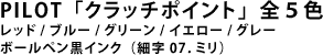 軸色がカラフルな5色展開のボールペンです。