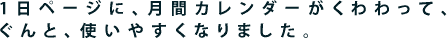 月間カレンダーも、より使いやすく改良をくわえました。