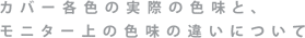 各カバーの色味に比較的近い番号を選んでおりますが、