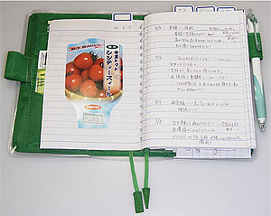 中には、横罫のみのシンプルなメモ帳を入れ、