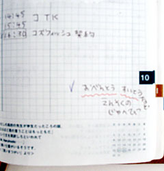 書いてあるかな、と手帳をのぞいて見たところ‥‥。