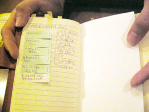 使い込まれた歴代の「ほぼ日手帳」を持ってくる人、