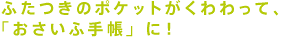 このふたつきのポケットにしまっておいて、