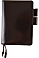 「牛革ガラス加工・ダークブラウン」のカバーと手帳本体。
