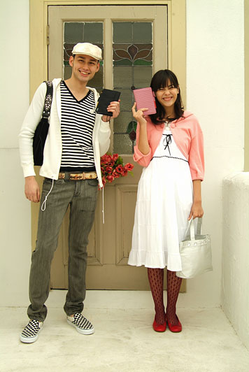 男性は、モノトーンで統一したスタイルに、