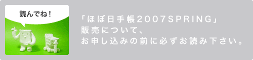 「ほぼ日手帳2007」SPRINGは、 2月1日(木)午前11時より販売開始いたします。 販売準備数が完売となるまで終了期限を設けず、 お申し込み受付を実施いたします。 「ほぼ日手帳2007」SPRING価格の一覧は、 こちらをご確認ください。 また、各商品の使用方法や商品について、 あらかじめ知っておいていただきたいことは こちらのページからご確認いただけます。 このたびご注文いただきました商品は、 お申し込み日から、 3営業日後〜7営業日以内(土日祝祭日を除く)に出荷を行なう予定です。 商品の出荷が終了次第、 ご注文の際にご記入いただきましたメールアドレスに お知らせのメールをお送りします。 ※お申し込み受付後、商品の準備が出来たものから 順次、出荷の手配を行ないますので お申し込み内容の変更・キャンセルは ご注文いただいた日の翌営業日 午前10時までにお願いいたします。 ※商品が出荷準備に入っている場合、 お申し込み内容の変更をすることは できませんのでご注意ください。 ■国 内 ・ヤマト運輸(クロネコヤマトの宅急便)でのお届けとなります。 国内への配送手数料は、全国一律630円です。 ■海 外 ・国際スピード郵便(EMS)でのお届けとなります。 海外への配送手数料は、 EMS送料と事務手数料の500円を合わせた金額となります。 EMS送料は地域と重量によって金額が異なりますので 料金はこちらのページでご確認ください。 また、それぞれの商品重量はこちらをご確認ください。 ご利用可能なお支払い方法は国内と海外で異なります。 お支払い方法によって お支払い時期も異なりますので、 下記の表をご確認ください。