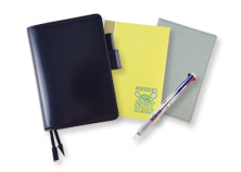 「牛革ガラス加工・ブルーブラック」のカバーと手帳本体。