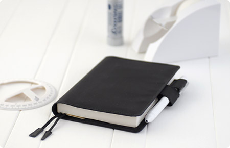 毎年、安定した人気をほこる定番色。 ナイロン素材が、黒に深みと光沢感をあたえて、 きりっとしたきれいな黒になっています。 ロゴの色は、黒をさらに上品に見せる、 深みのあるむらさき色をえらびました。 ※ 上の写真の手帳にセットされているボールペンは、 ほぼ日ストア特典のボールペンとは異なります。 ※ 価格はすべて消費税込・配送手数料別です。