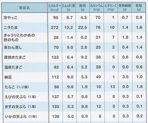 カロリーだけでなく、各食品の栄養素の成分も