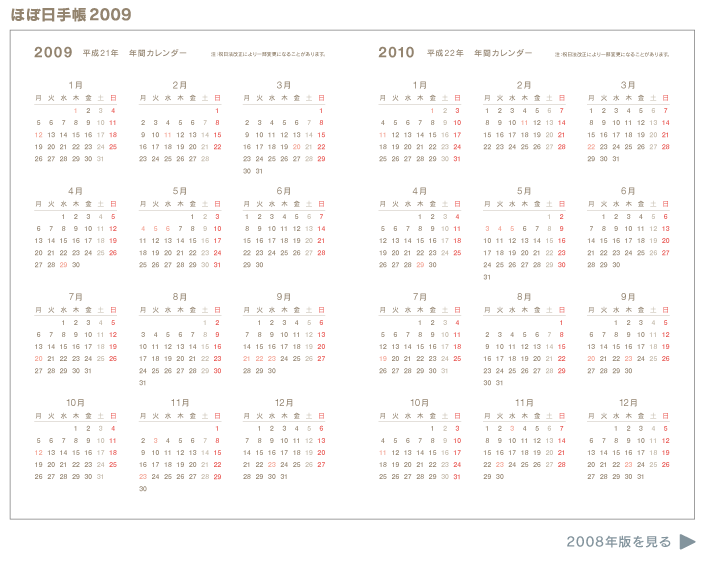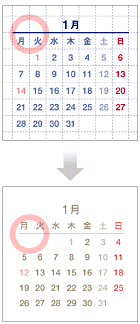 2008年版までは、月と曜日の間に